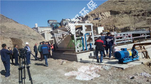 The belt filter machine we produced was professionally used in mine tailings,low operating cost,large treatment volume,throughput 100 m3/h.Strong corrosion resistance,the moisture content of the filter cake is low.Our machine has been put into operation in a number of large copper mines in China, received high praise from customers, The good efficiency on mine mud filer by our machine ,so there have more and more mining plants to choose us, they eliminated box filter press and plate filter press. For example, some mining industry in Yunnan, China (we can go there together to site insection of the sewage treatment ), which choose a number of mine sludge dewatering equipment,good operation effect.